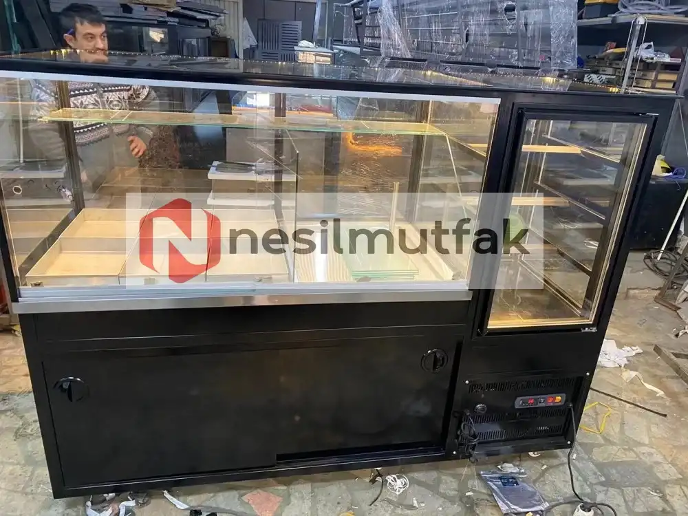 Pasta Dolabı Ön ve Arka kapıları sürgülü cam