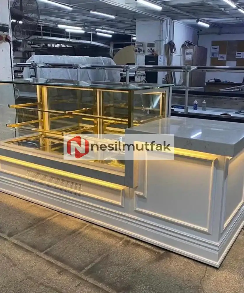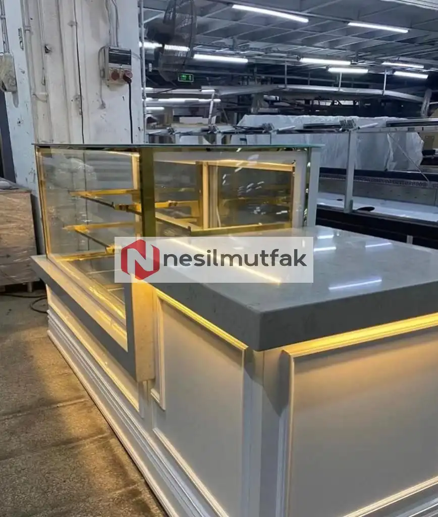 Pasta Dolabı Beyaz Dekor ve Çalışma Tezgahlı