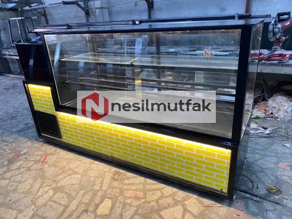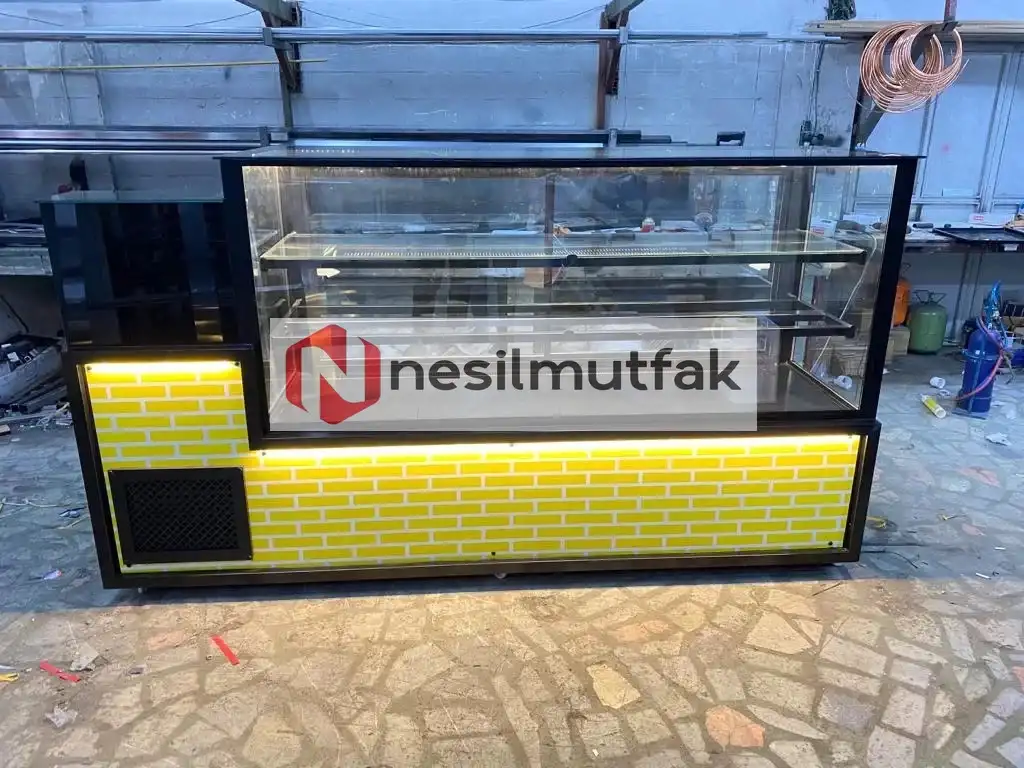 Pasta Tatlı Dolabı Sarı Dekor Model