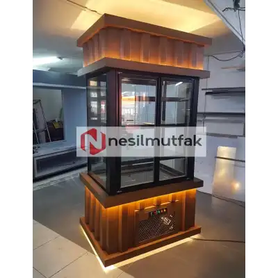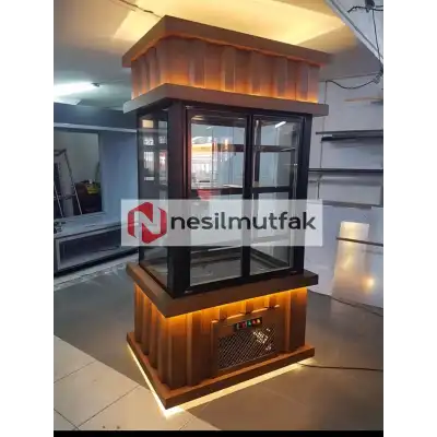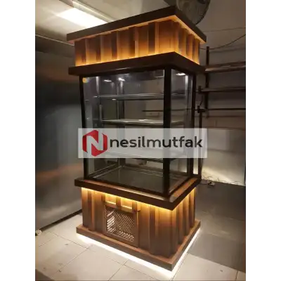 Dik Model Ahşap Dekorlu Pasta Dolabı